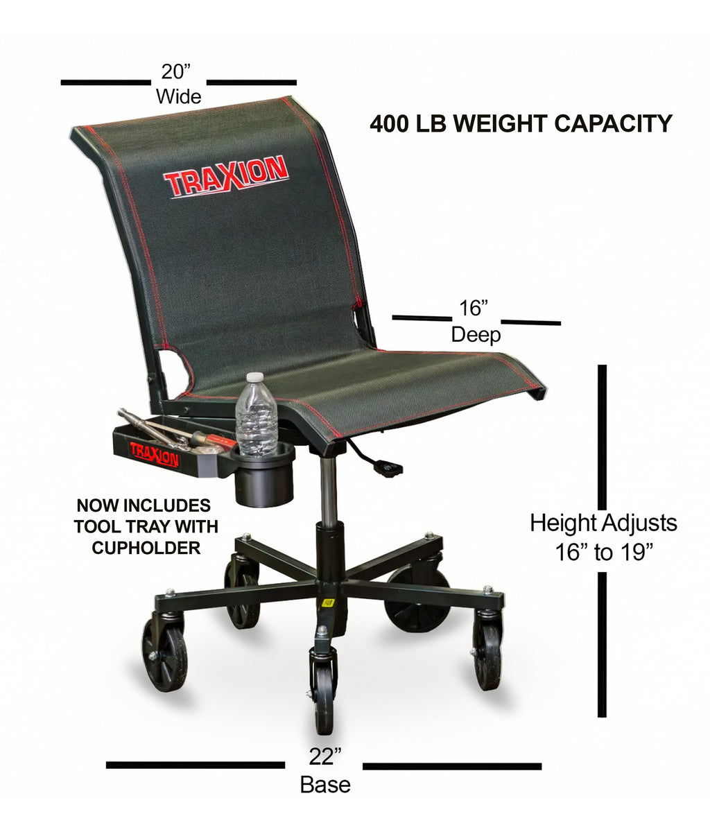 Our brand new Mesh Flex Seat is designed for unbeatable comfort and durability. It features a wide, ergonomically designed seat and a full backrest, ensuring you stay comfortable while you work. The durable mesh material provides unparalleled comfort and excellent airflow, keeping you cool during long hours in the garage.