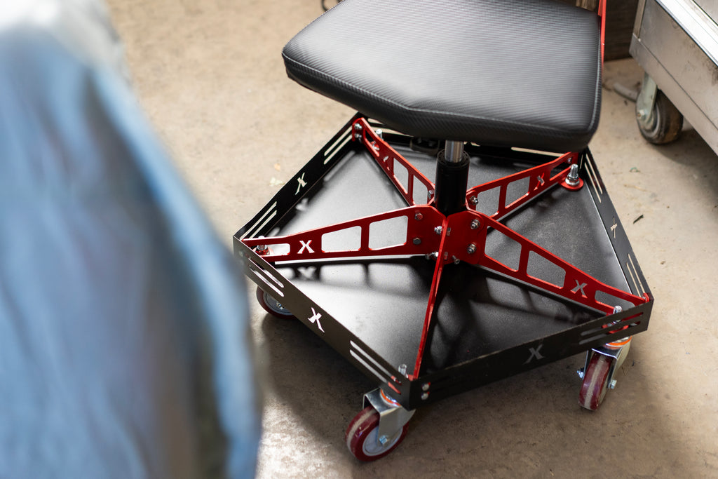Introducing the Traxion Lazer X ProGear Seat — the perfect fusion of comfort, durability, and mobility for makers, mechanics, and innovators alike. Built with a rugged powder coated steel frame and precision-engineered components, this seat is designed to withstand the demands of any workshop or garage. Its cushioned seat and backrest offer all-day comfort, while heavy-duty 4inch caster wheels provide effortless mobility across your workspace. With a striking industrial design and modular construction, the Lazer X seat isn’t just built to perform — it’s built to impress. Whether you're fine-tuning a project or diving into hands-on work, this is the seat that rolls with you, supports you, and never backs down. This seat comes with a 10yr Warranty on the Frame, Tray & Casters with proof of purchase. It also comes with a 2yr Warranty on the Upholstered Seat & Pneumatic Cylinder with proof of purchase.