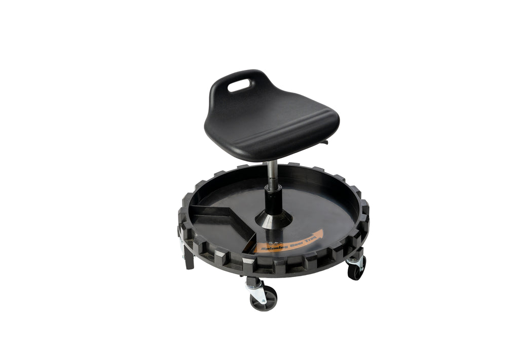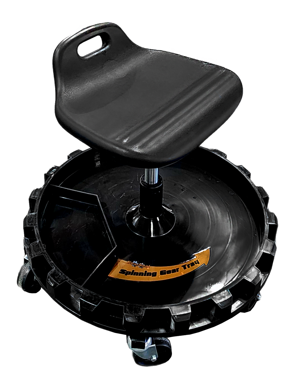 The Economy Gear Seat has adjustable height, five 3" Casters and Traxion’s Patented Spinning Gear Tray.