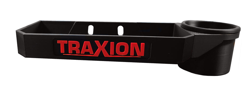 For a reliable and convenient tool storage solution, a tool tray with pre-drilled holes and an integrated cup holder that bolts on either side of the Traxion ProGear 2-720 MeshFlex Work Seat is an excellent choice. Crafted from heavy-duty hard plastic, this offers a robust and durable platform for organizing tools as well as an integrated cup holder that adds extra convenience, allowing you to keep a beverage within reach. The tray provides ample space for essential tools while ensuring they remain easily accessible. The pre-drilled holes make installation straightforward, allowing the tray to be securely bolted to the chair using the included bolts and brackets. This type of tray is perfect for mechanics looking to keep their tools and drinks organized and within reach, enhancing efficiency and productivity in the workshop.